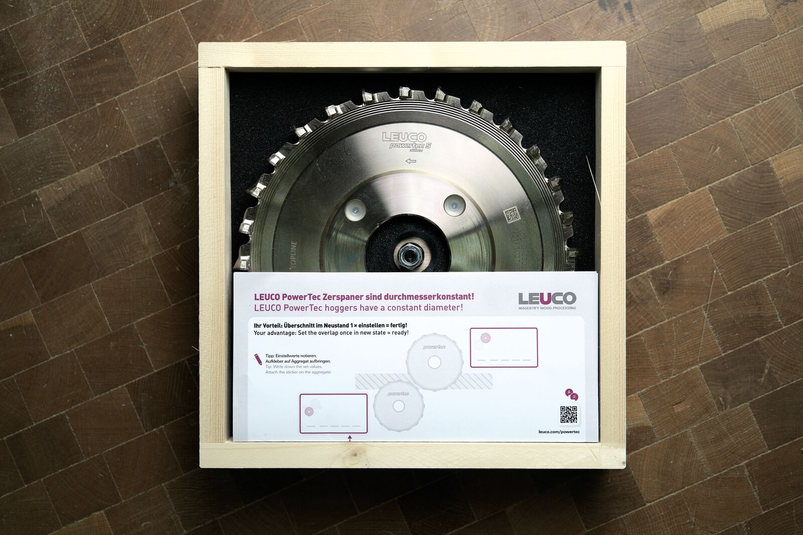 The unique diametric consistency of the LEUCO PowerTecs also provides users with remarkable ease of use. Having a constant diameter means that the cutting circle diameter of the PowerTec hogger does not change after a sharpening operation. So after resharpening, it's 'plug & play': Just place the PowerTec hogger on the unit and, thanks to this feature, the machine is able to continue operating with the same machine parameter settings. This minimizes machine downtime.