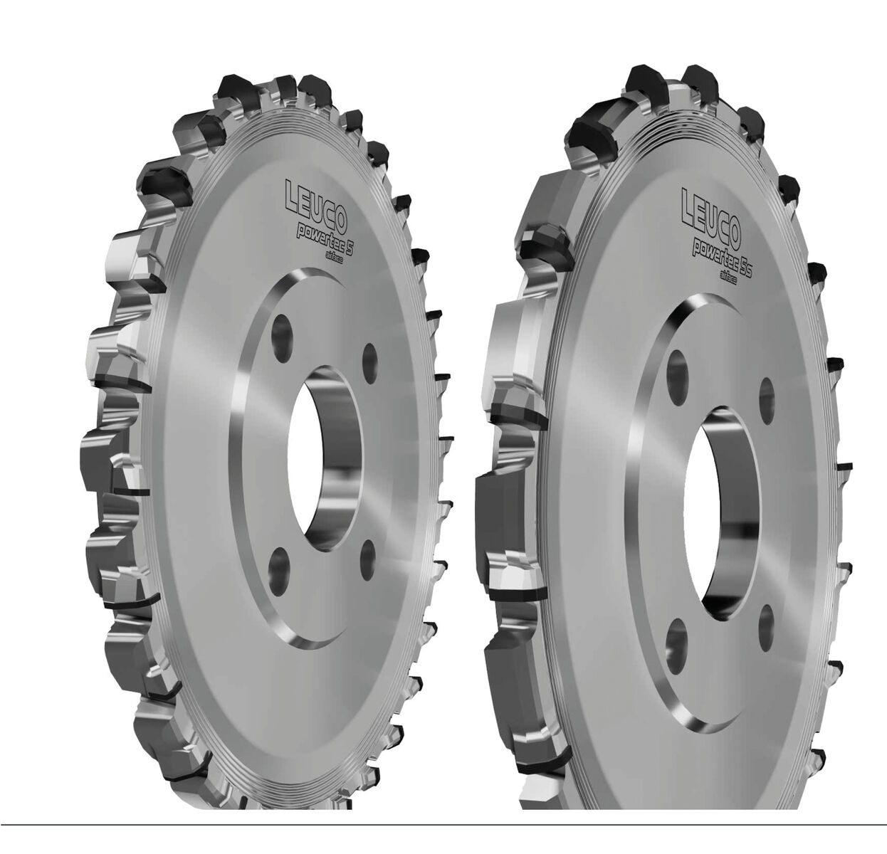 For the first time, LEUCO provided users with the reinforced 'S' version in the previous PowerTec generation and this was very well received on the market. LEUCO adds a plus to the two typical strengths of this hogger with the PowerTec 5S airFace version: Length of tool life, even at high feed rates. The new PowerTec 5S airFace hogger is equipped with more cutting edges than before. By this, it achieves a higher material removal rate compared with the already powerful basic model. Reinforced DP cutting blades also makes them more robust and less prone to abrasive wear. That extends their tool life. The LEUCO-specific 'airFace' design of the base body reduces noise emissions when running without load and while machining to the lowest level that can be achieved with a hogger.